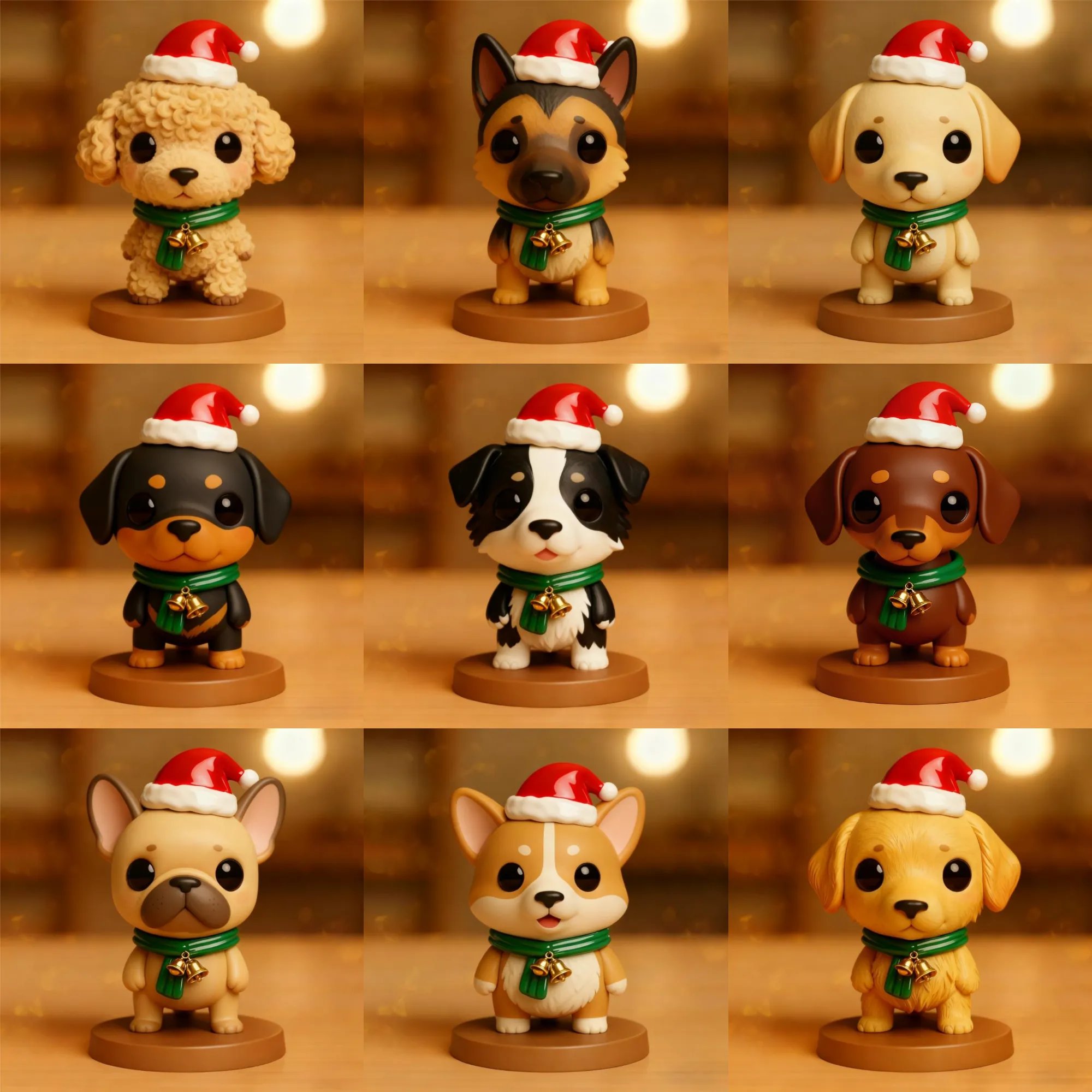 From the lovable Golden Retriever to the playful Corgi, our collection features nine popular dog breeds, each wearing a cute Santa hat and scarf to capture the festive spirit. These hand-painted figurines highlight the unique personality of each breed, making them a must-have for dog lovers and collectors alike!
