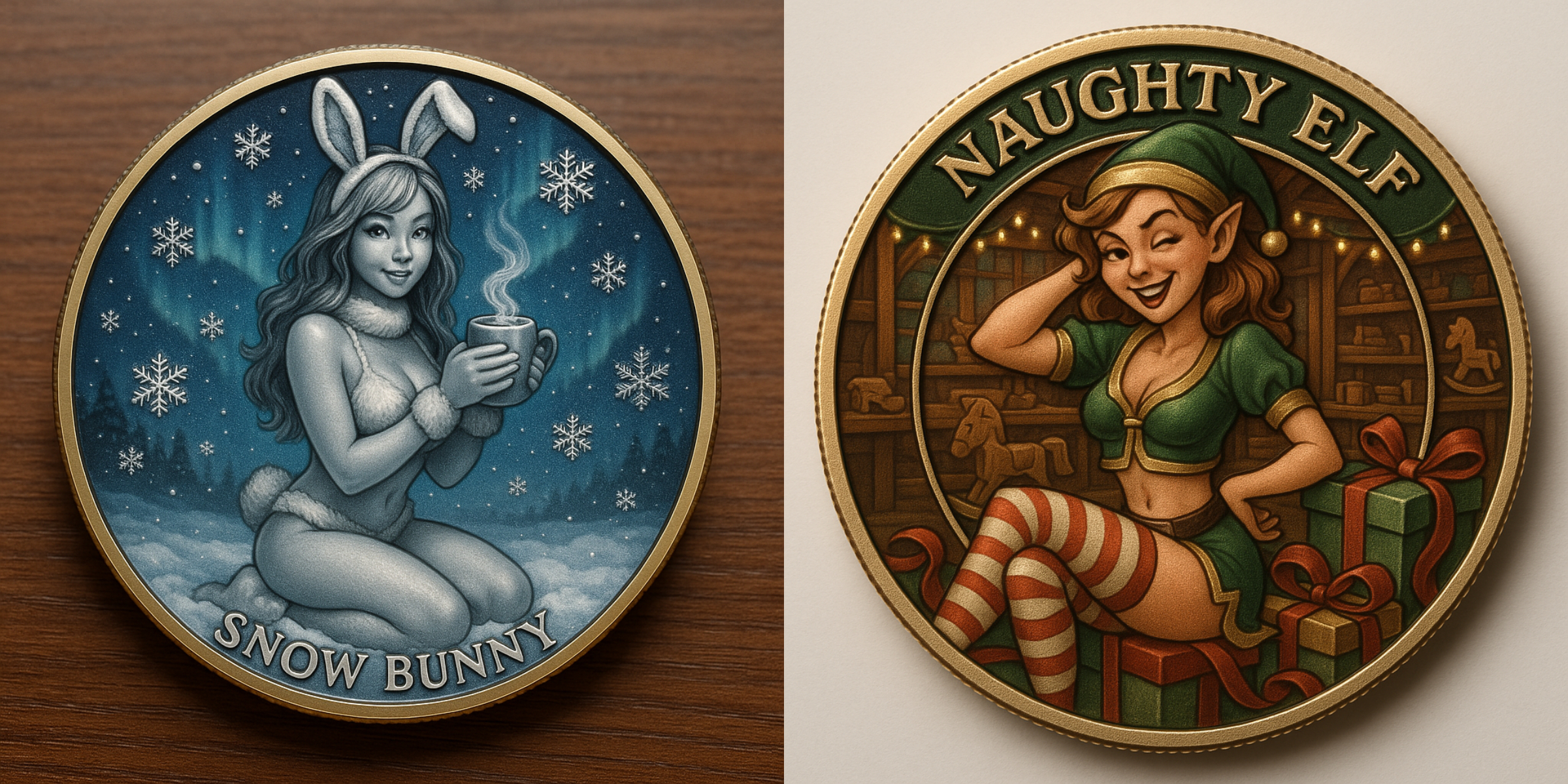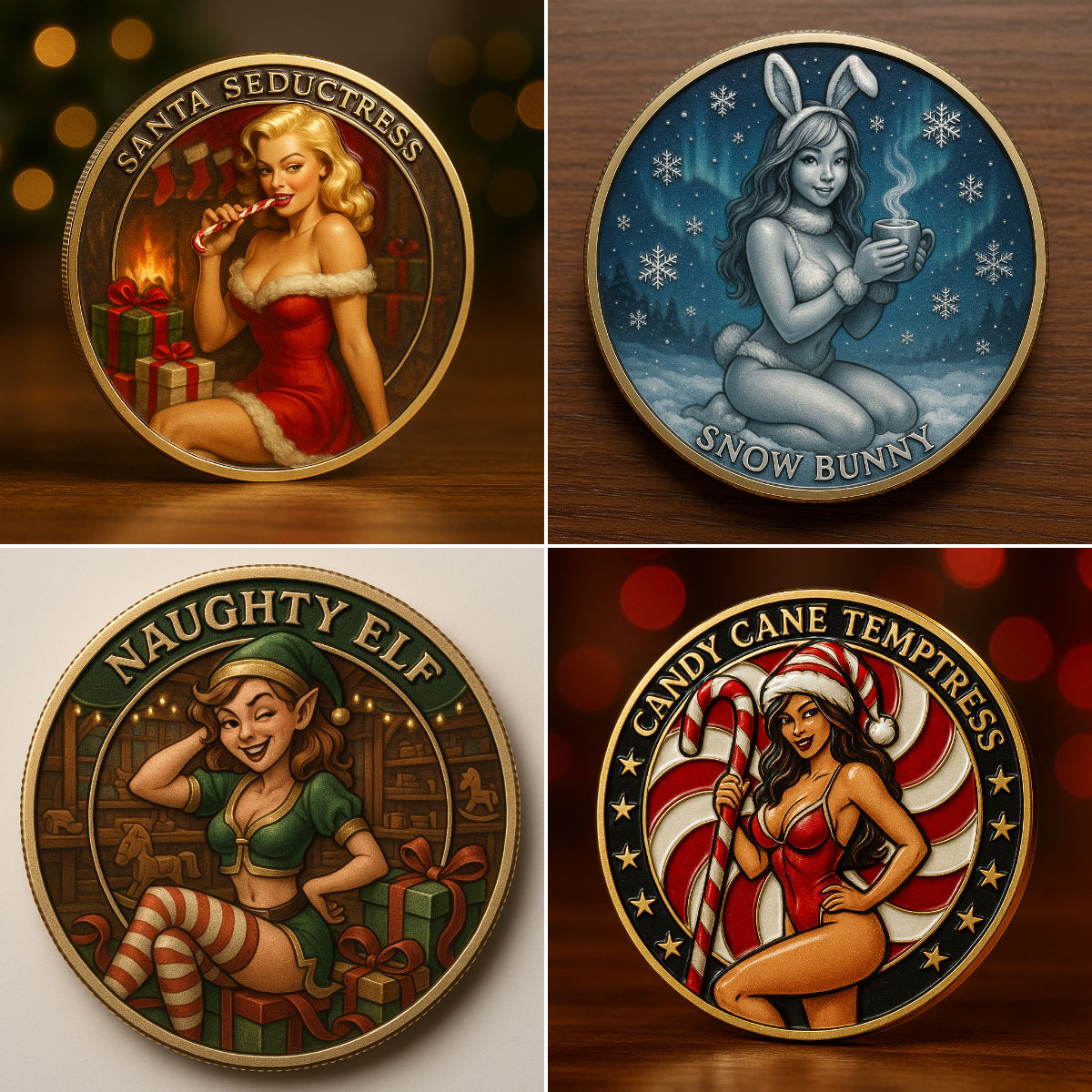 π₯Each coin combines festive charm with playful elegance - perfect for collectors who appreciate daring holiday spirit!