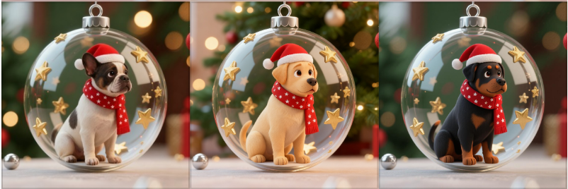 Bring the spirit of Christmas and the love of dogs together with our Β Ornament Collection! Each handcrafted ornament features a beloved dog breed β Rottweiler, Poodle, Golden Retriever, Labrador, Dachshund, and French Bulldog β dressed in festive style with Santa hats, scarves, and golden stars.
