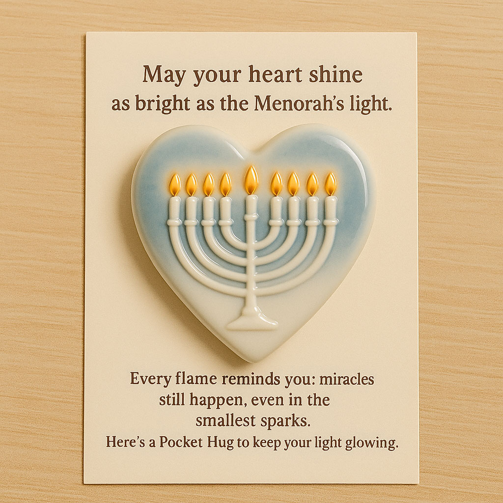 Share the light, embrace the miracleβcarry a Pocket Hug and let your heart glow this Hanukkah.