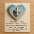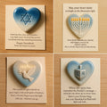 Each heart-shaped keepsake is delicately designed with meaningful Jewish symbolsβdove of peace, spinning dreidel, Star of David, and a glowing menorahβcapturing the spirit and wonder of the Festival of Lights.