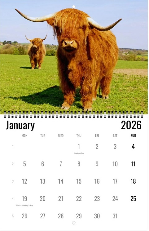 🎁✨Bring the charm of Highland cows into your year with our 2026 Highland Cow Wall Calendar!
