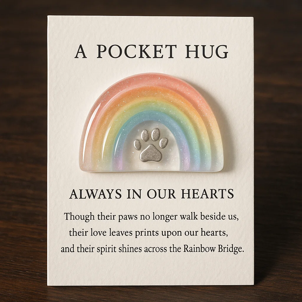 πΎHonor the eternal love for your furry companion with our βA Pocket Hug - Pet Memorial Rainbow Editionβ! This tender keepsake is a heartfelt tribute to beloved pets whoβve crossed the Rainbow Bridge, offering comfort and a reminder that their love remains forever in your heart.
