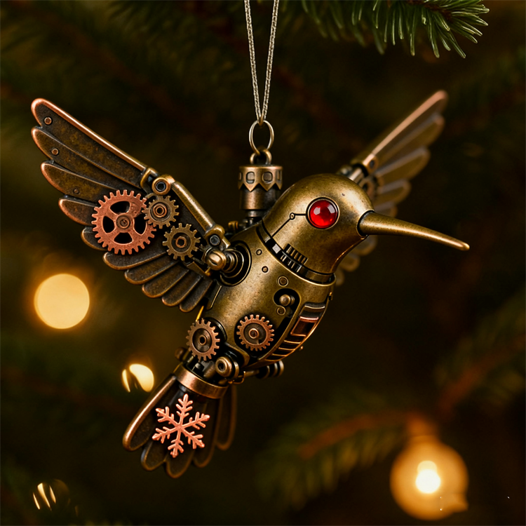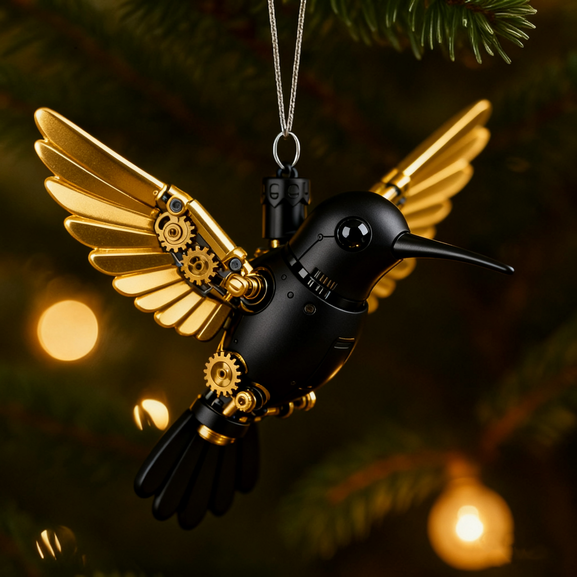 π Bring futuristic elegance and vintage charm together this holiday season with our Steampunk Mechanical Hummingbird Ornaments!