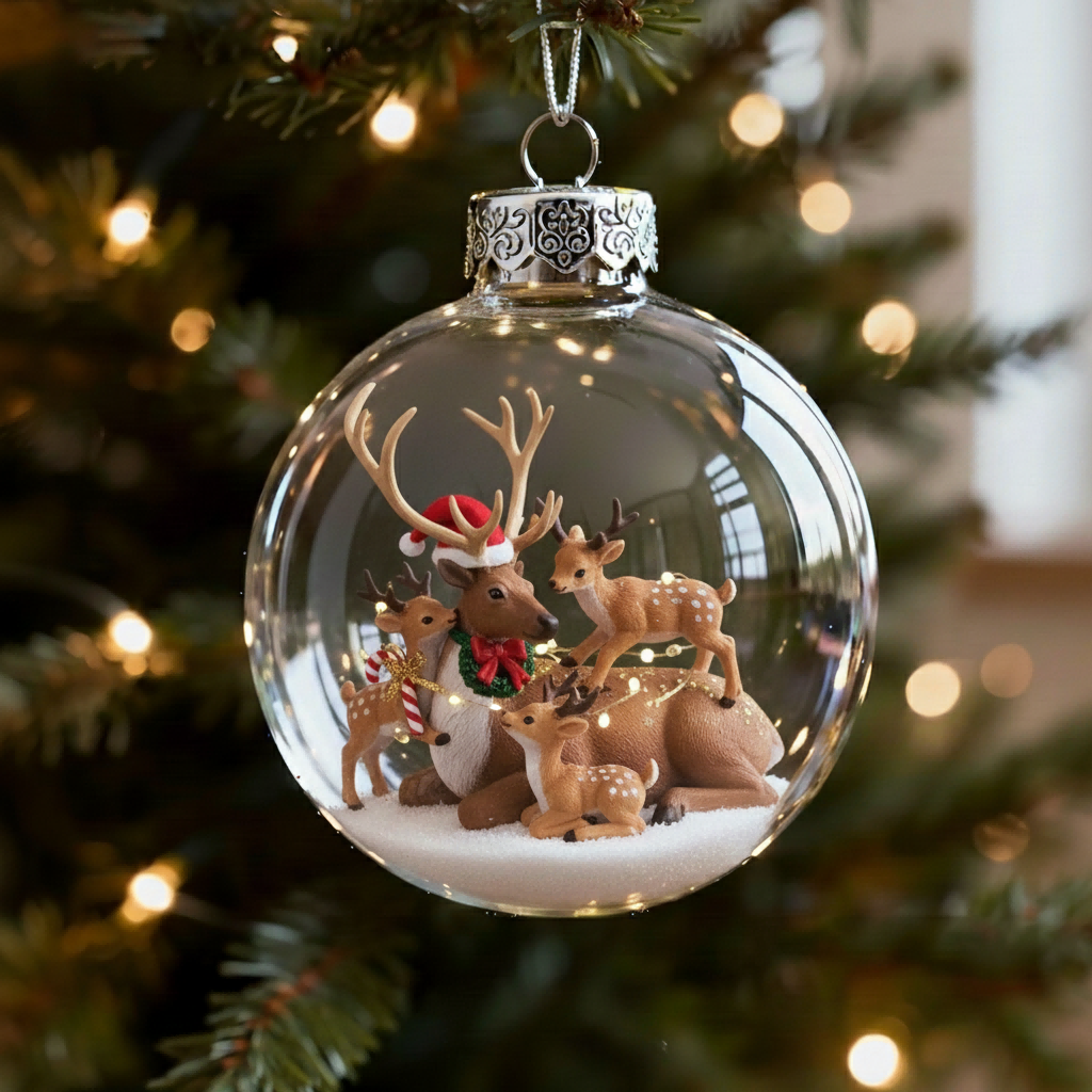 This isn't just an ornament; it's a luminous tribute to the heart of the holiday seasonβthe enduring bond of family. Each handcrafted glass sphere invites you into a miniature world where the noble reindeer embody the very essence of love, dedication, and kinship that defines our own families.