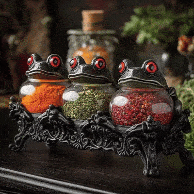 Inspired by apothecary lore and Gothic design, these frog spice jars will add a touch of mystical charm to your home.