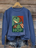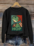 Women's Retro Hop Resist Frog Printed Round Neck Sweatshirt